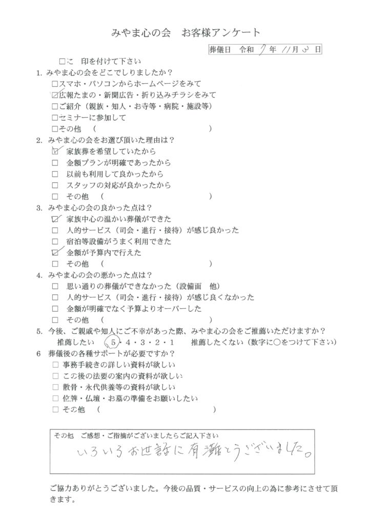 玉野市で家族葬なら「みやま心の会」にお任せください。
